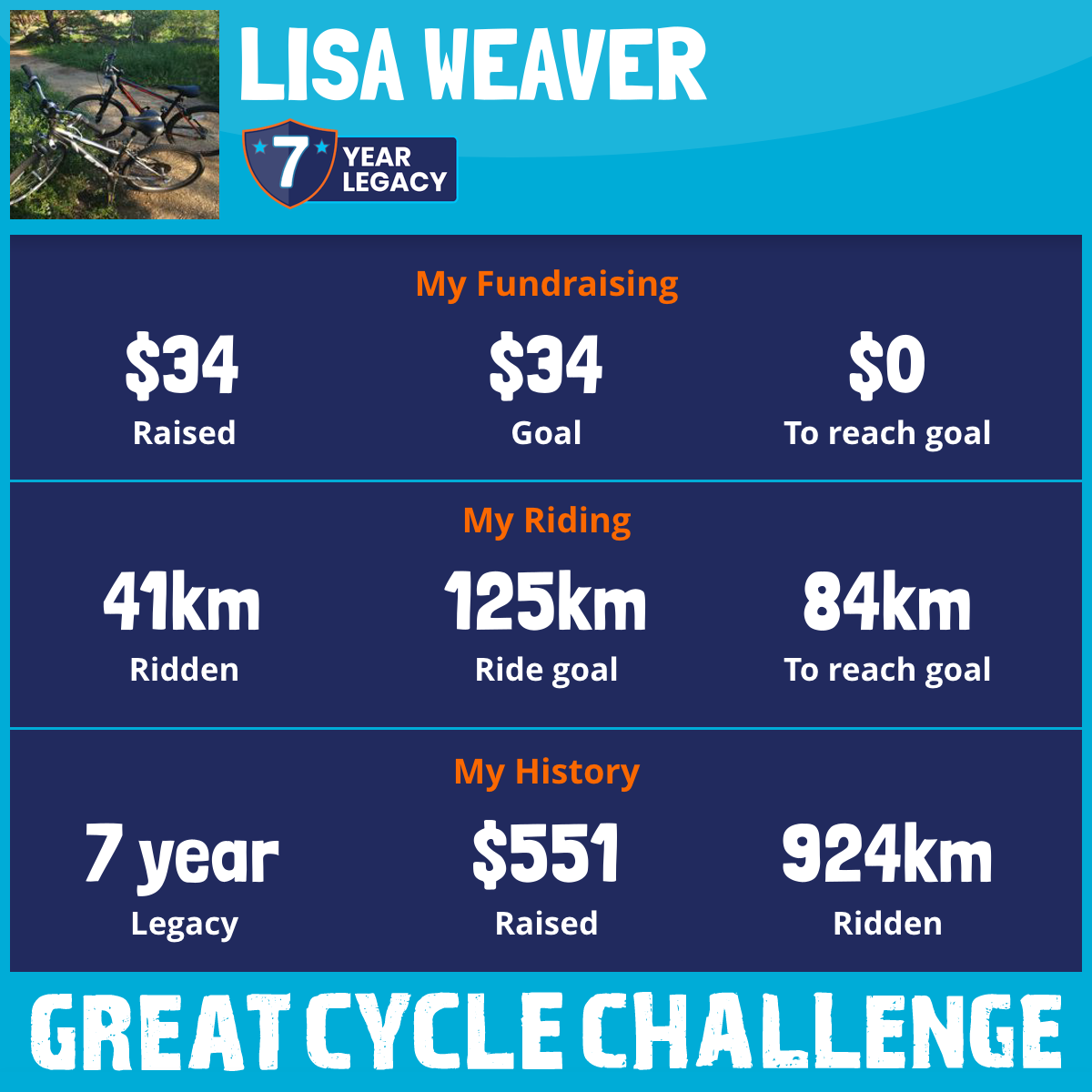 My name is Lisa Weaver. It makes me happy that each time I jump on my bike in August it will be to help children with cancer.