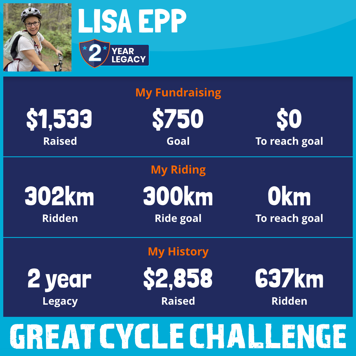302 km Ridden$1,533 Raised2025