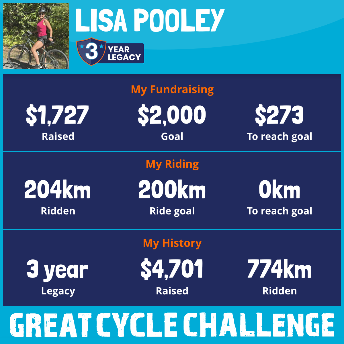 204 km Ridden$1,727 Raised2025
