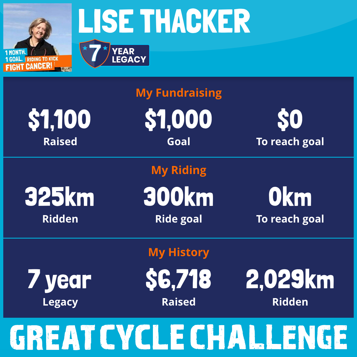 * I will update my fundraising goal ($) and ride (km) goal as the cycle challenge progresses.