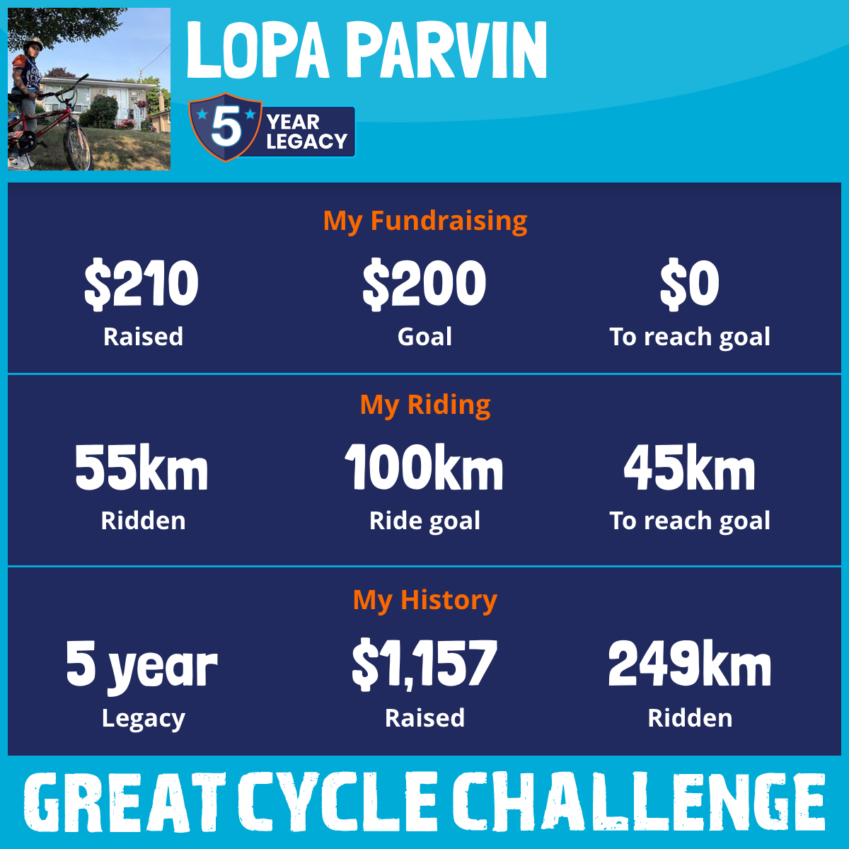 55 km Ridden$210 Raised2025