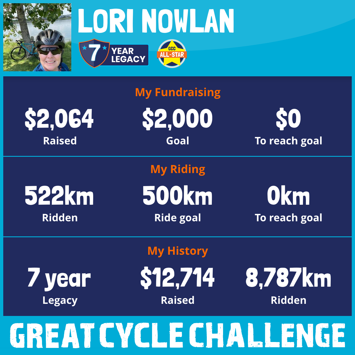 3,600 km Ridden$1,324 Raised2020