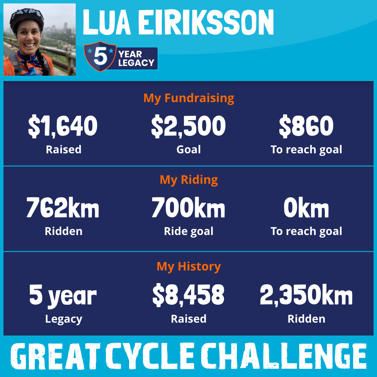 762 km Ridden$1,640 Raised2025