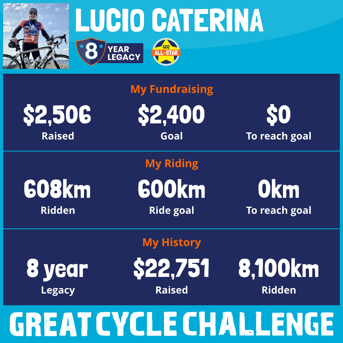 1,034 km Ridden$3,686 Raised2023