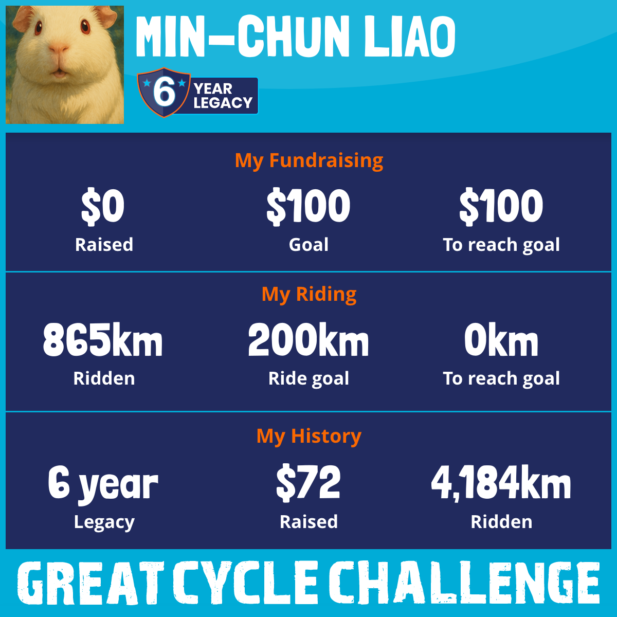 1,172 km Ridden$72 Raised2023