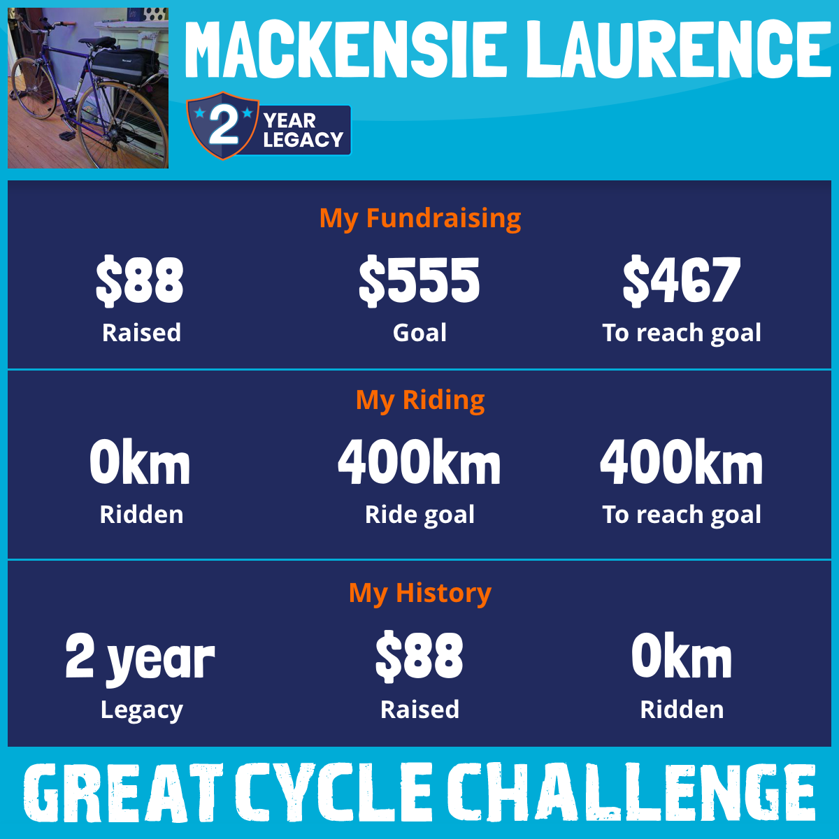 I am riding 400 km for my friend, Mason and katie. Please sponsor me and support my challenge to fight kids' cancer and save little lives.
