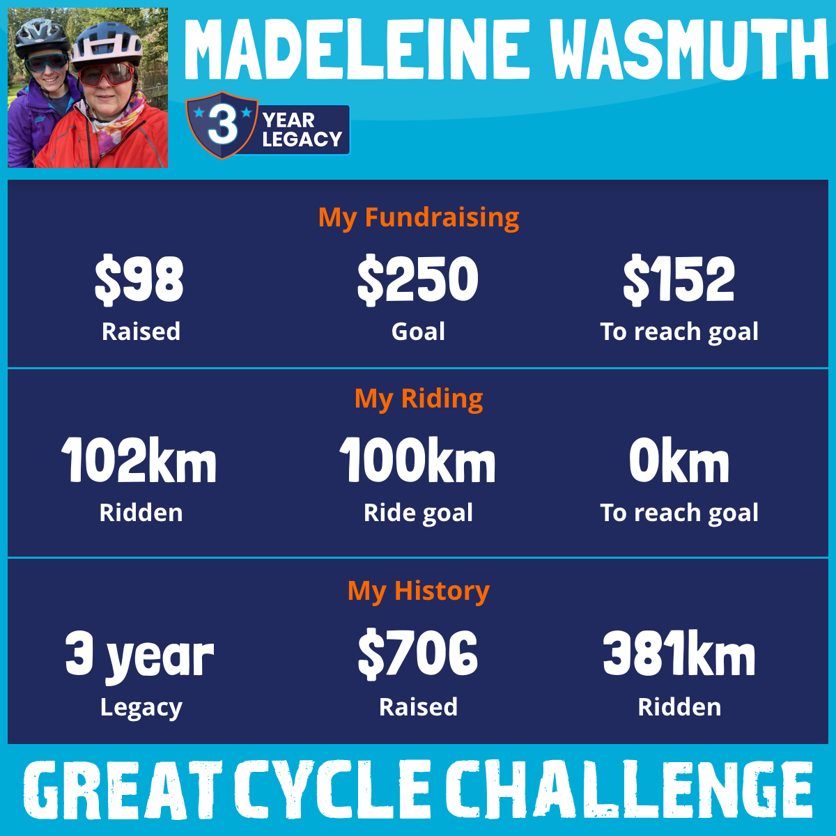 102 km Ridden$98 Raised2026