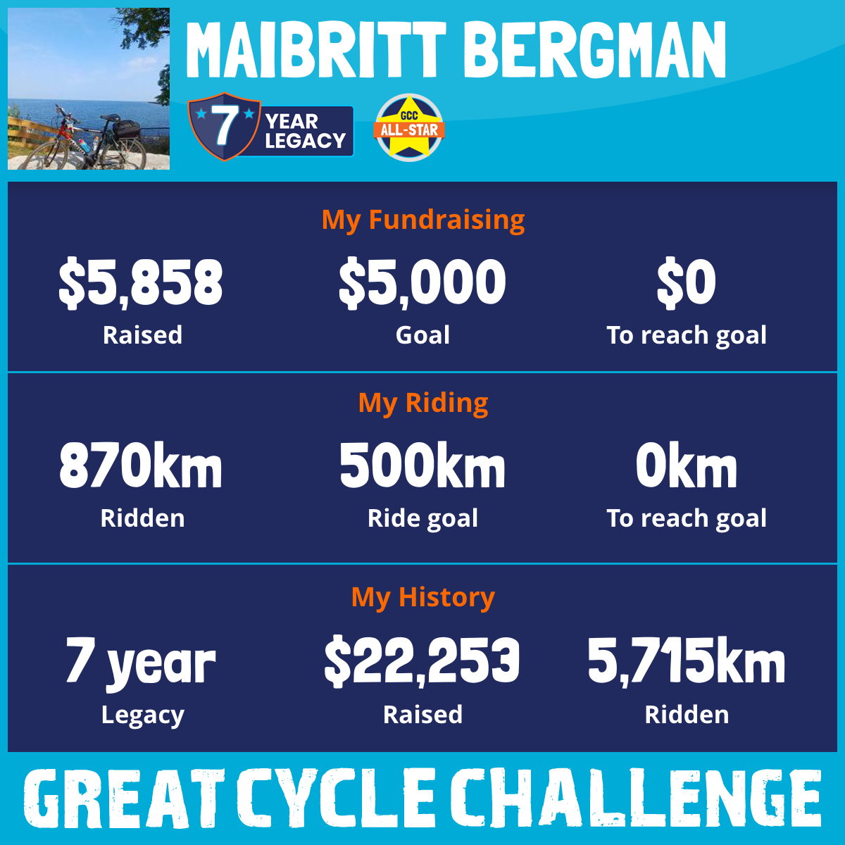 870 km Ridden$5,858 Raised2025