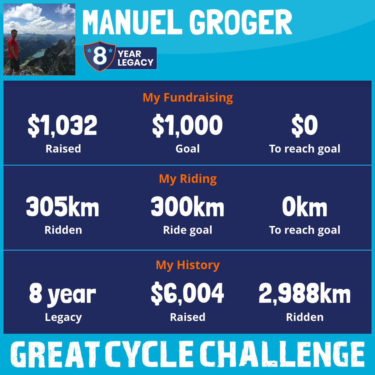 305 km Ridden$1,032 Raised2026