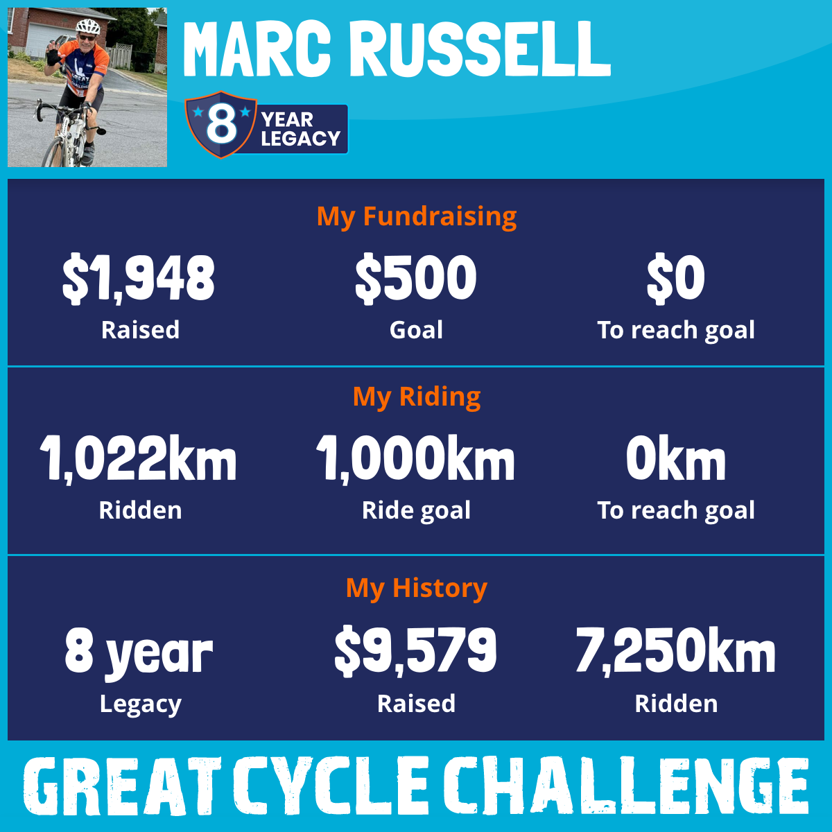 I am riding 1,000 km in memory of Denise Russell. Please sponsor me and support my challenge to fight kids' cancer and save little lives.