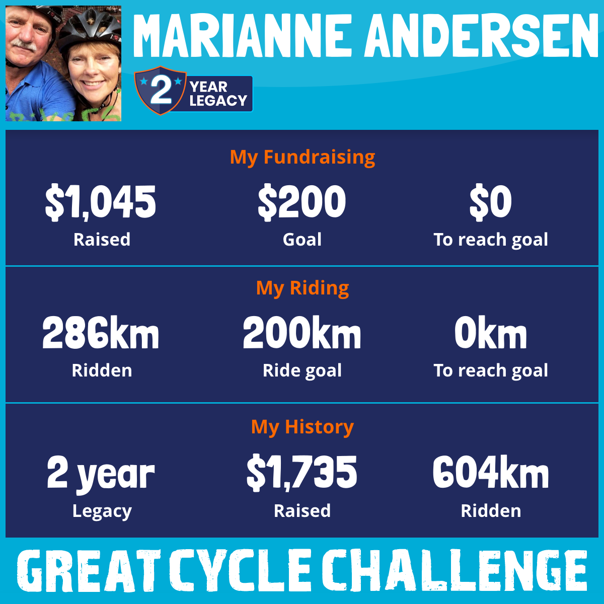 286 km Ridden$1,045 Raised2026