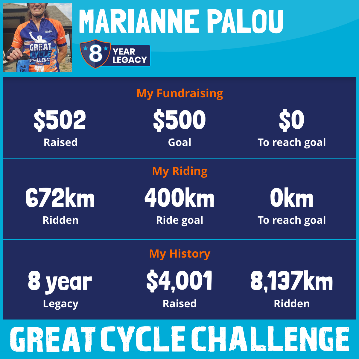 672 km Ridden$502 Raised2025
