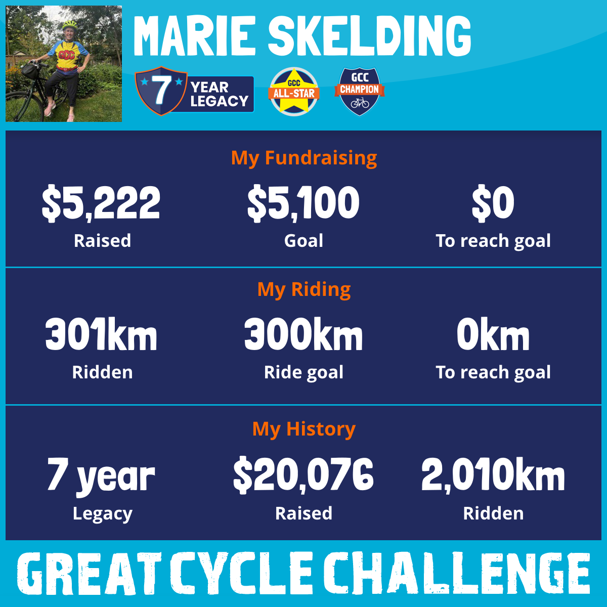 31 Aug 2025I finished 300 km today. Beautiful, sunny ride in Cambridge. Doing it for all those amazing children. Thank you for giving me this terrific opportunity to give back. 💕Hope to cycle again next year.