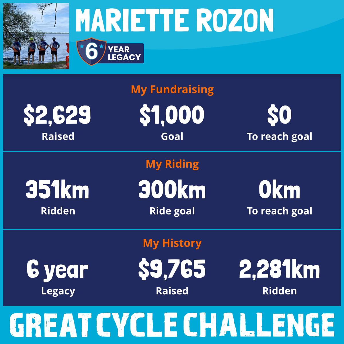 351 km Ridden$2,629 Raised2025