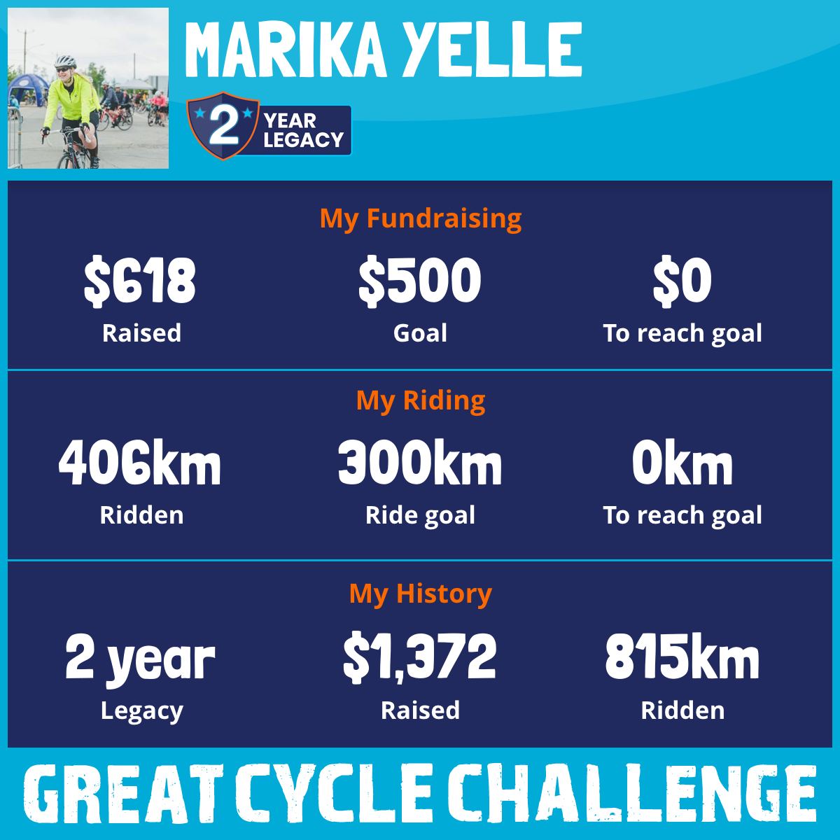 406 km Ridden$618 Raised2026