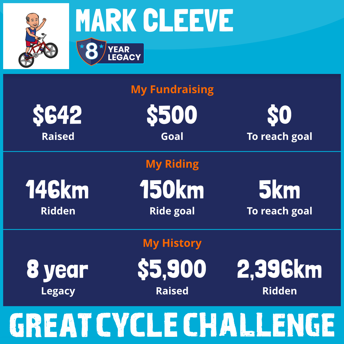 This August, for the fifth year I am taking part in the Great Cycle Challenge to fight kids' cancer!