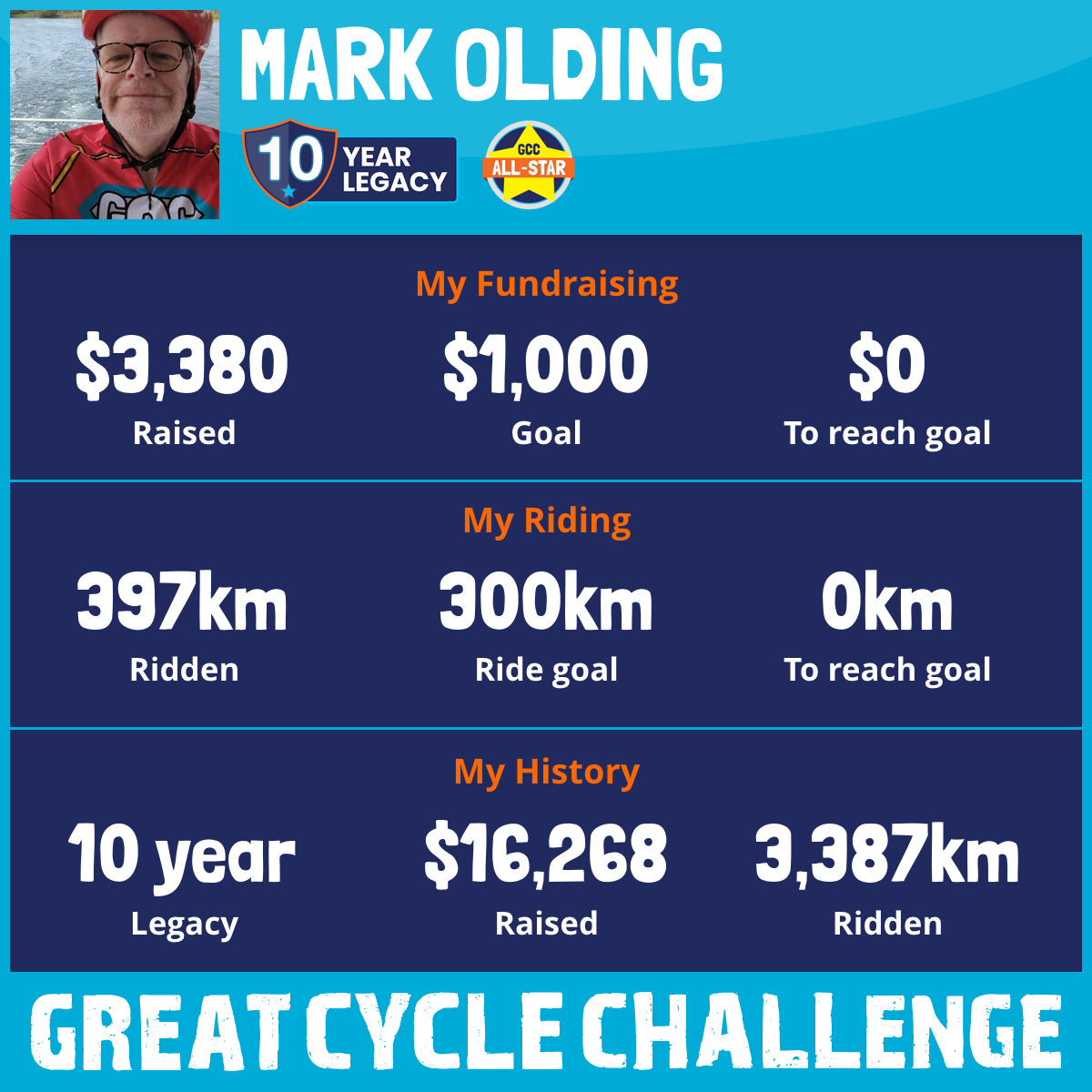 397 km Ridden$3,380 Raised2026