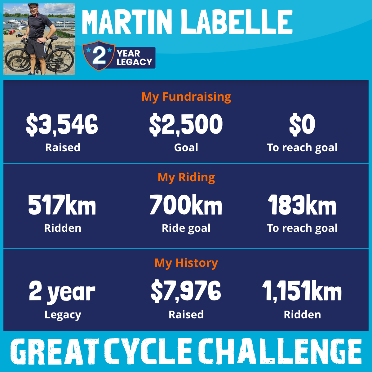 517 km Ridden$3,546 Raised2025