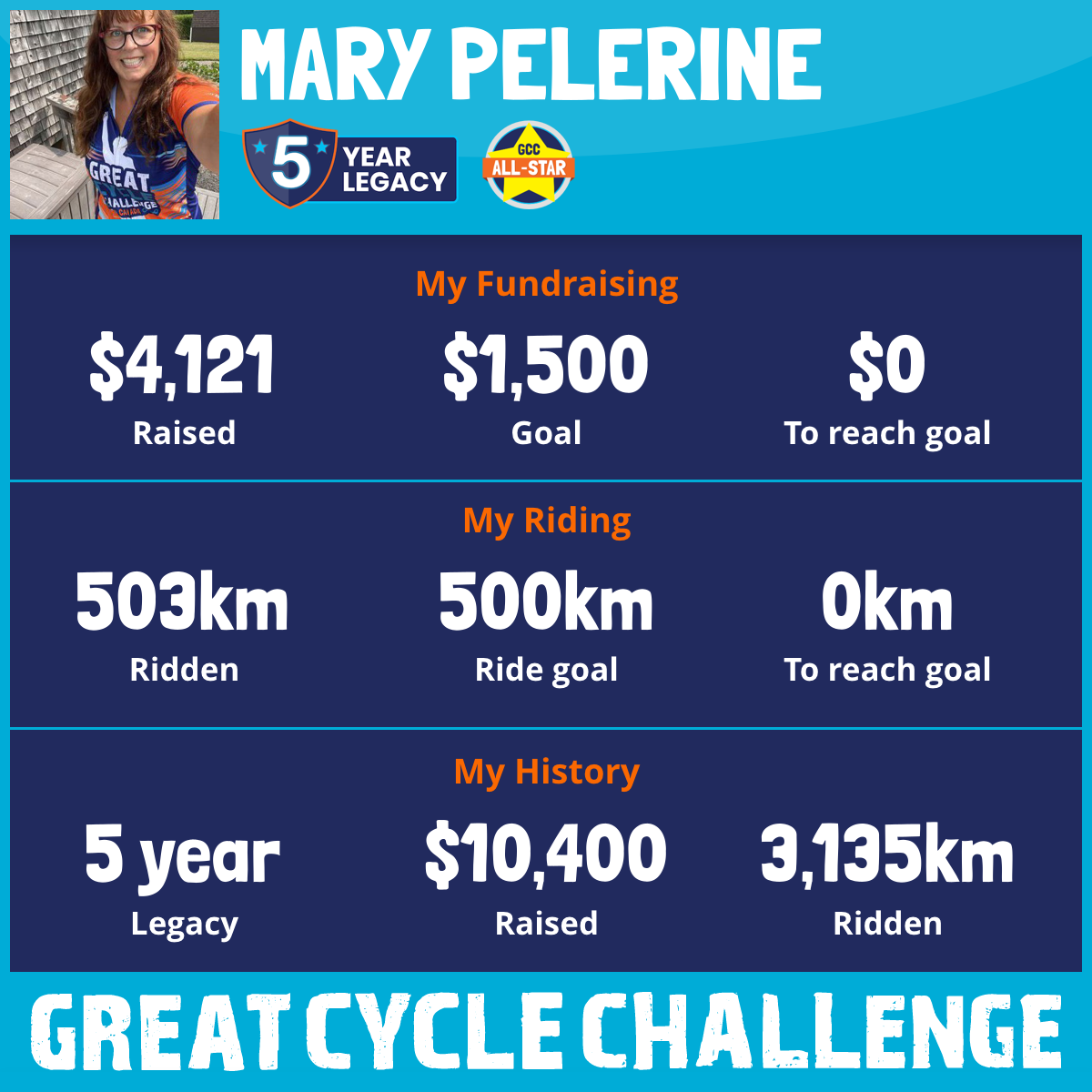 503 km Ridden$4,121 Raised2025