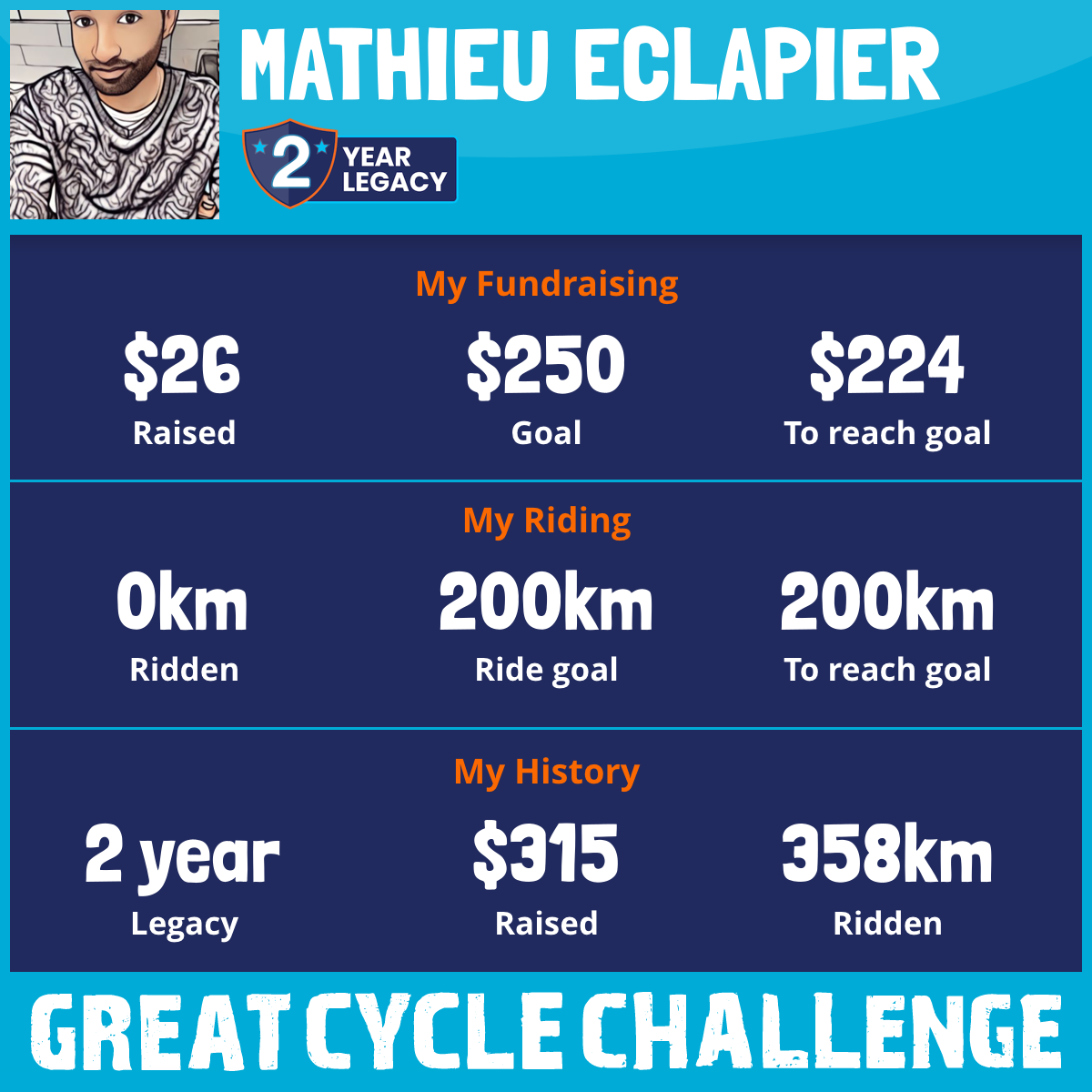 358 km Ridden$289 Raised2024