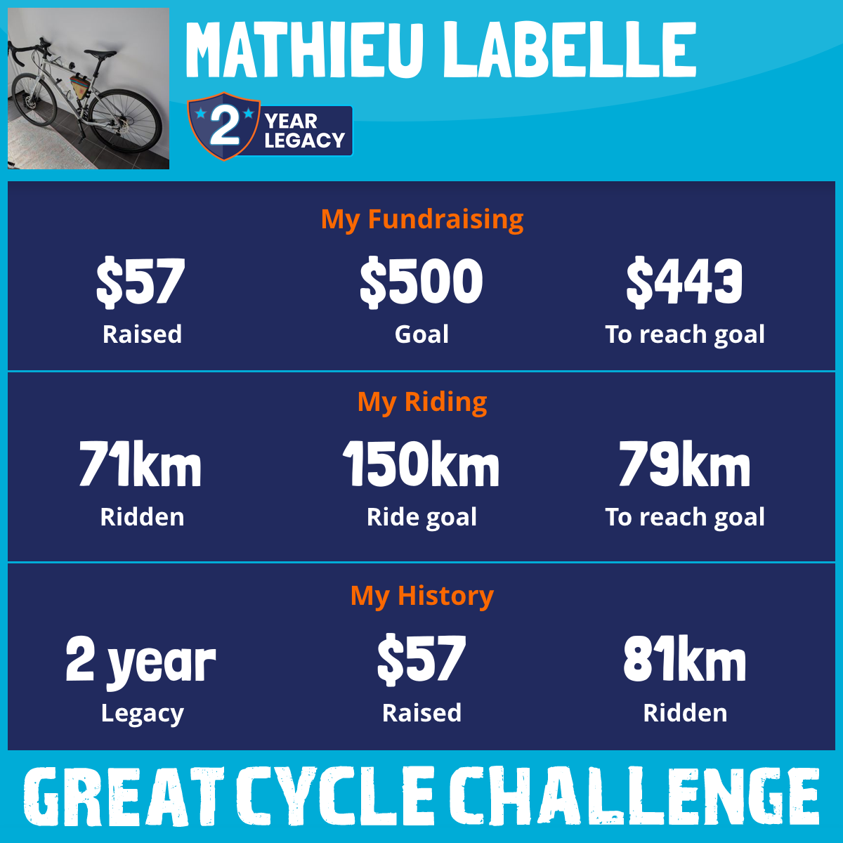 71 km Ridden$57 Raised2026