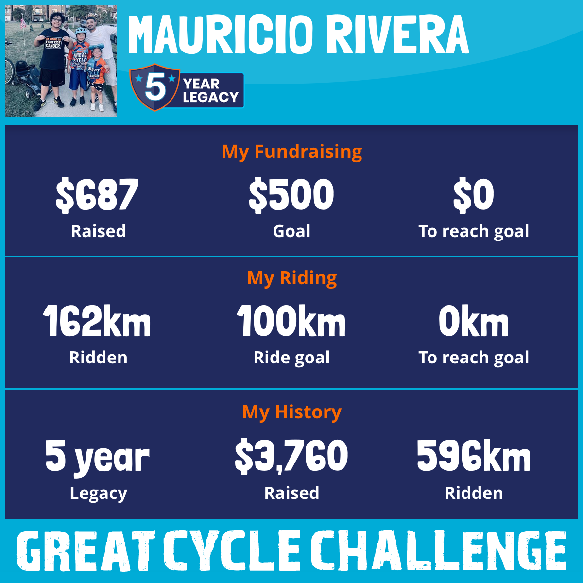 This June, I(Mauricio), D Marcelo / E Mauricio and C madison are taking part in the Great Cycle Challenge to fight kids' cancer!