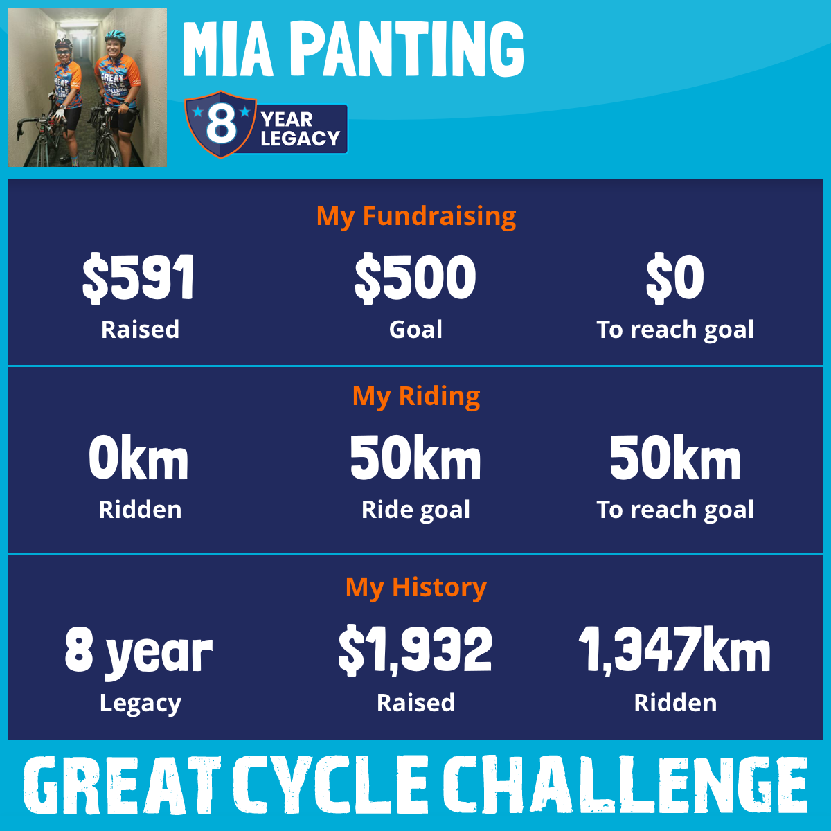 164 km Ridden$762 Raised2021
