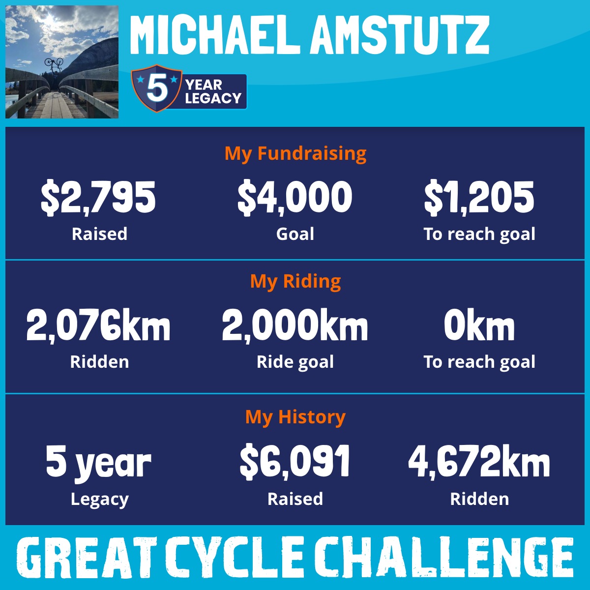 2,096 km Ridden$2,795 Raised2026