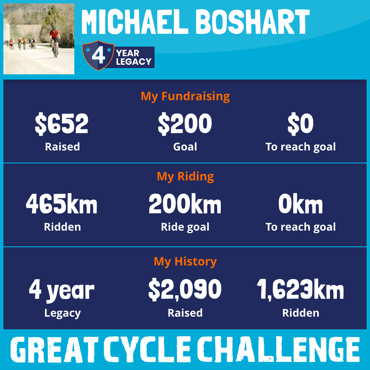 465 km Ridden$652 Raised2026