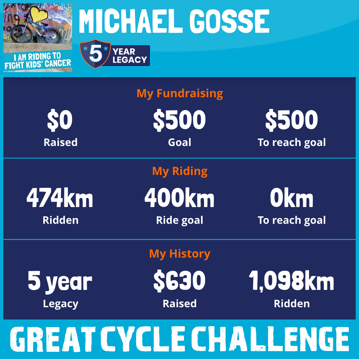 This August, I am taking part in the Great Cycle Challenge to fight kids' cancer!