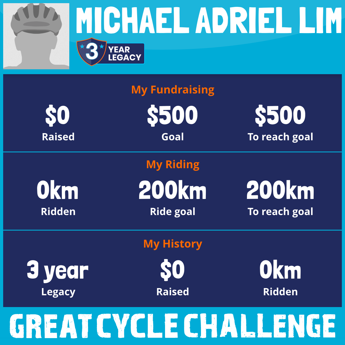 I am riding 200 km in memory of my myself, Mike. Please sponsor me and support my challenge to fight kids' cancer and save little lives.