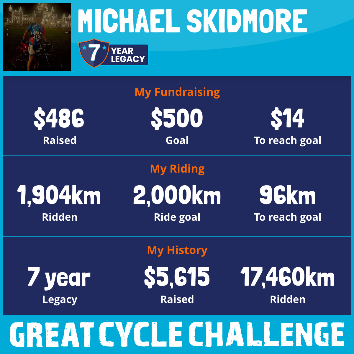 I am riding 2,000 km in memory of Norm Rudden. Please sponsor me and support my challenge to fight kids' cancer and save little lives.