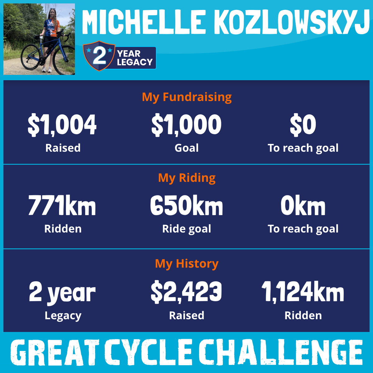 771 km Ridden$1,004 Raised2025