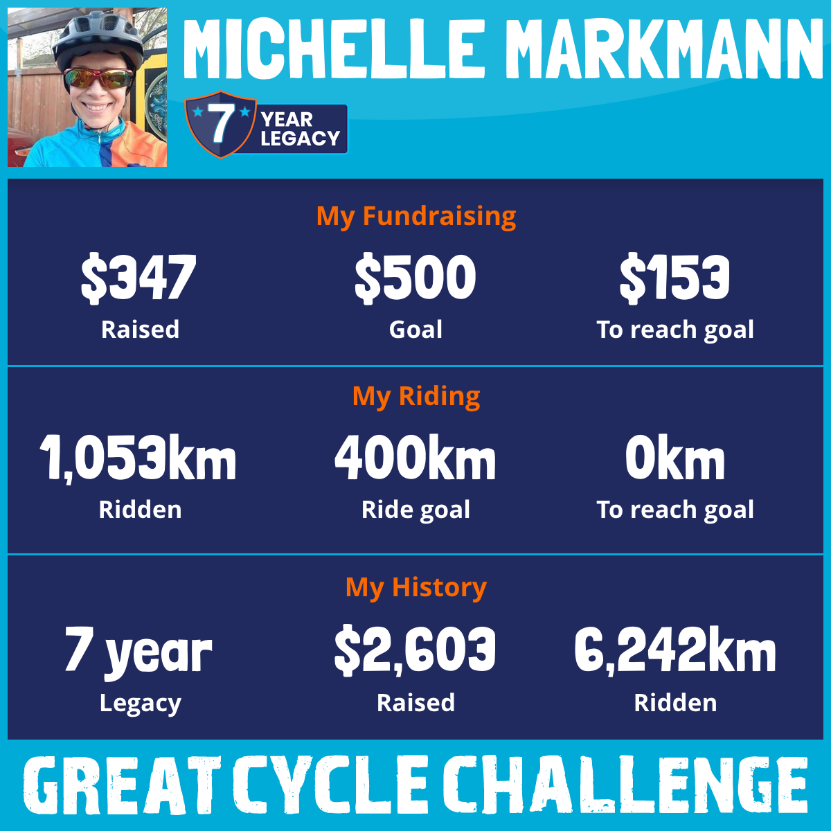 1,053 km Ridden$347 Raised2025
