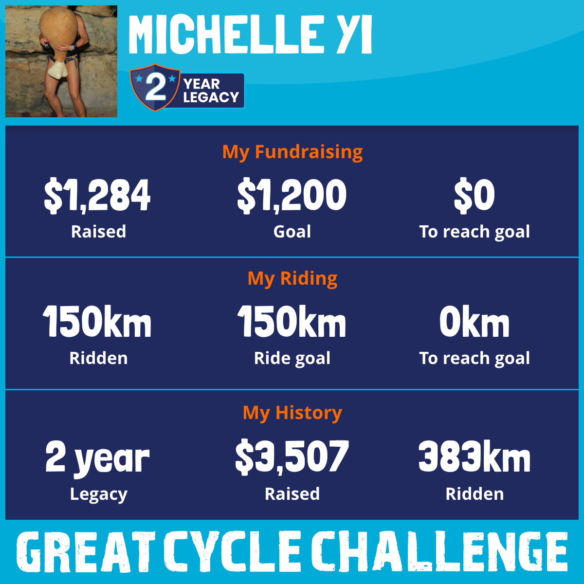 150 km Ridden$1,284 Raised2026