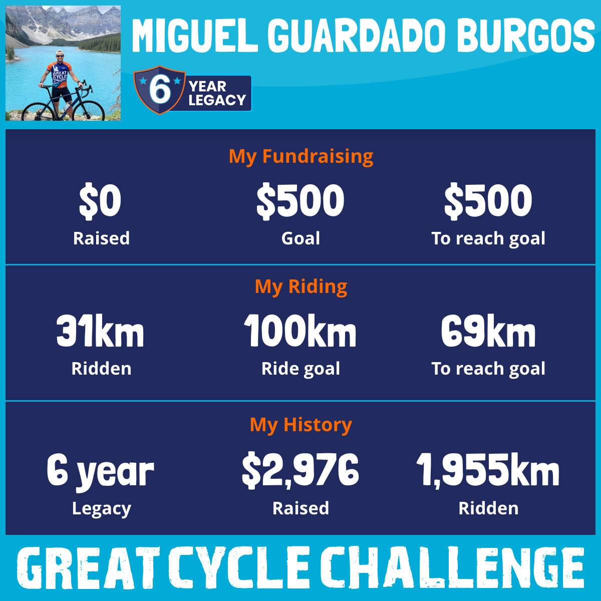 I am riding 100 km for Miguelito. Please sponsor me and support my challenge to fight kids' cancer and save little lives.
