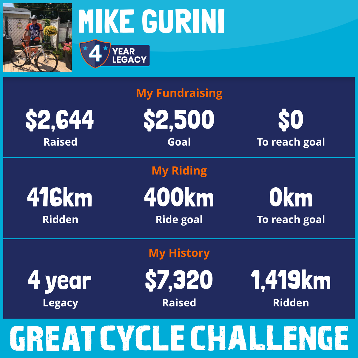 416 km Ridden$2,644 Raised2025