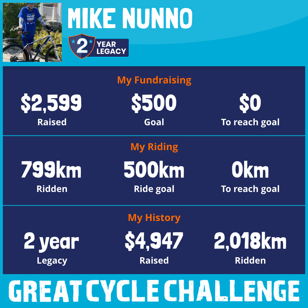 799 km Ridden$2,599 Raised2026