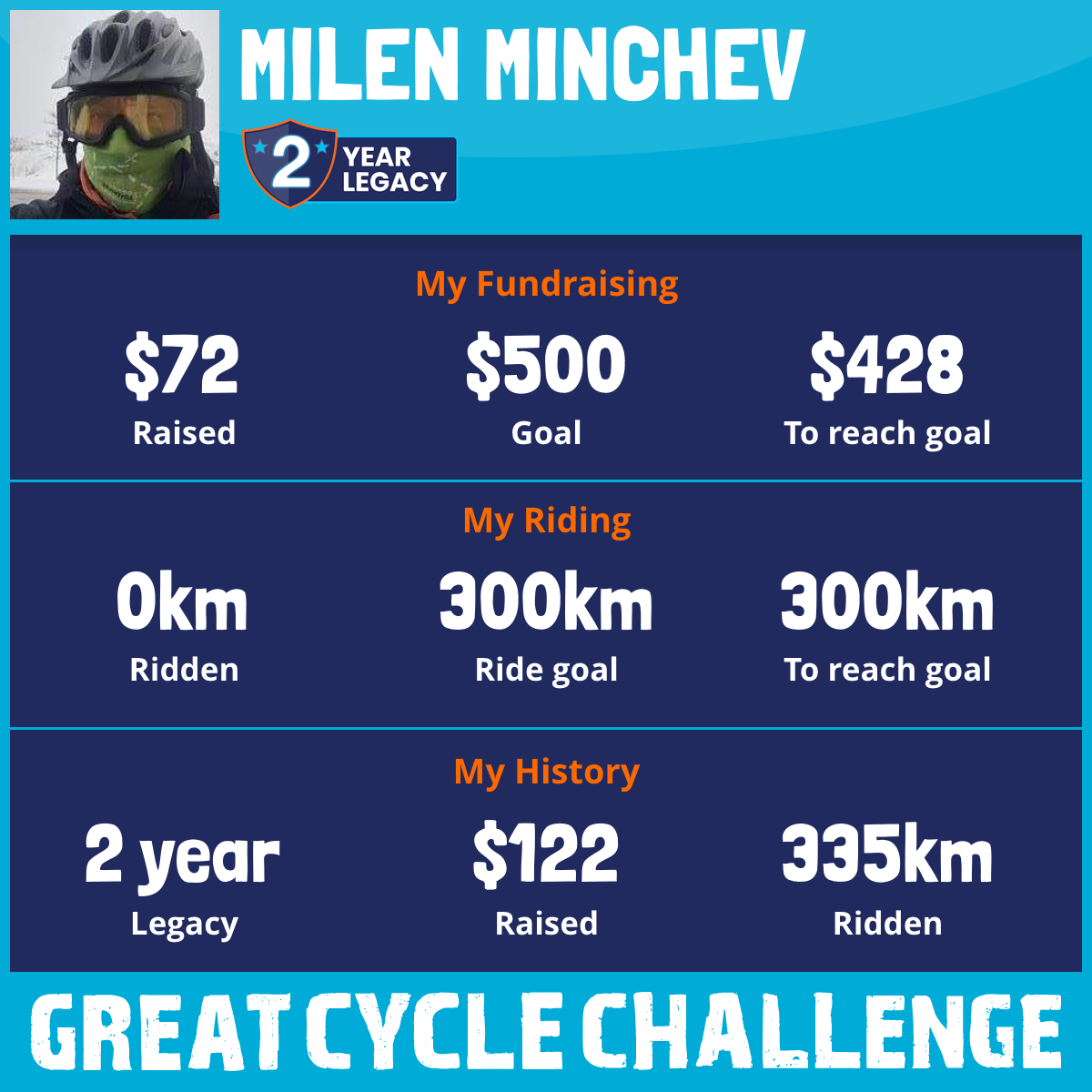 335 km Ridden$50 Raised2022