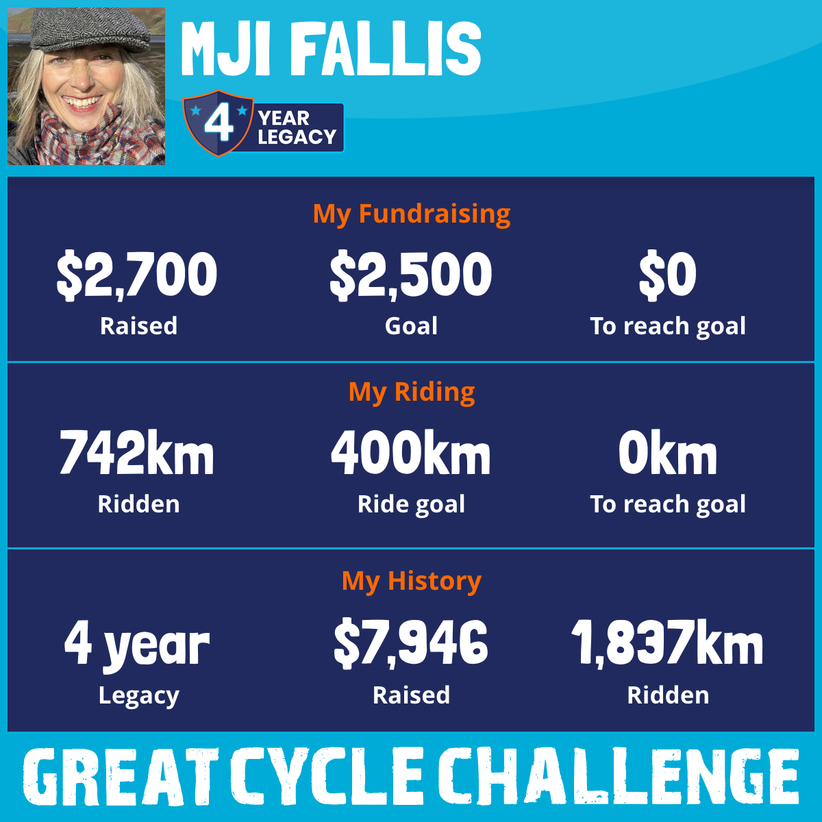 742 km Ridden$2,700 Raised2025