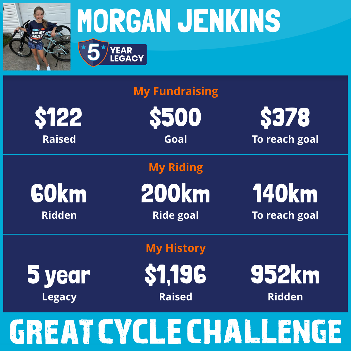 This August, I am taking part in the Great Cycle Challenge to fight kids' cancer!