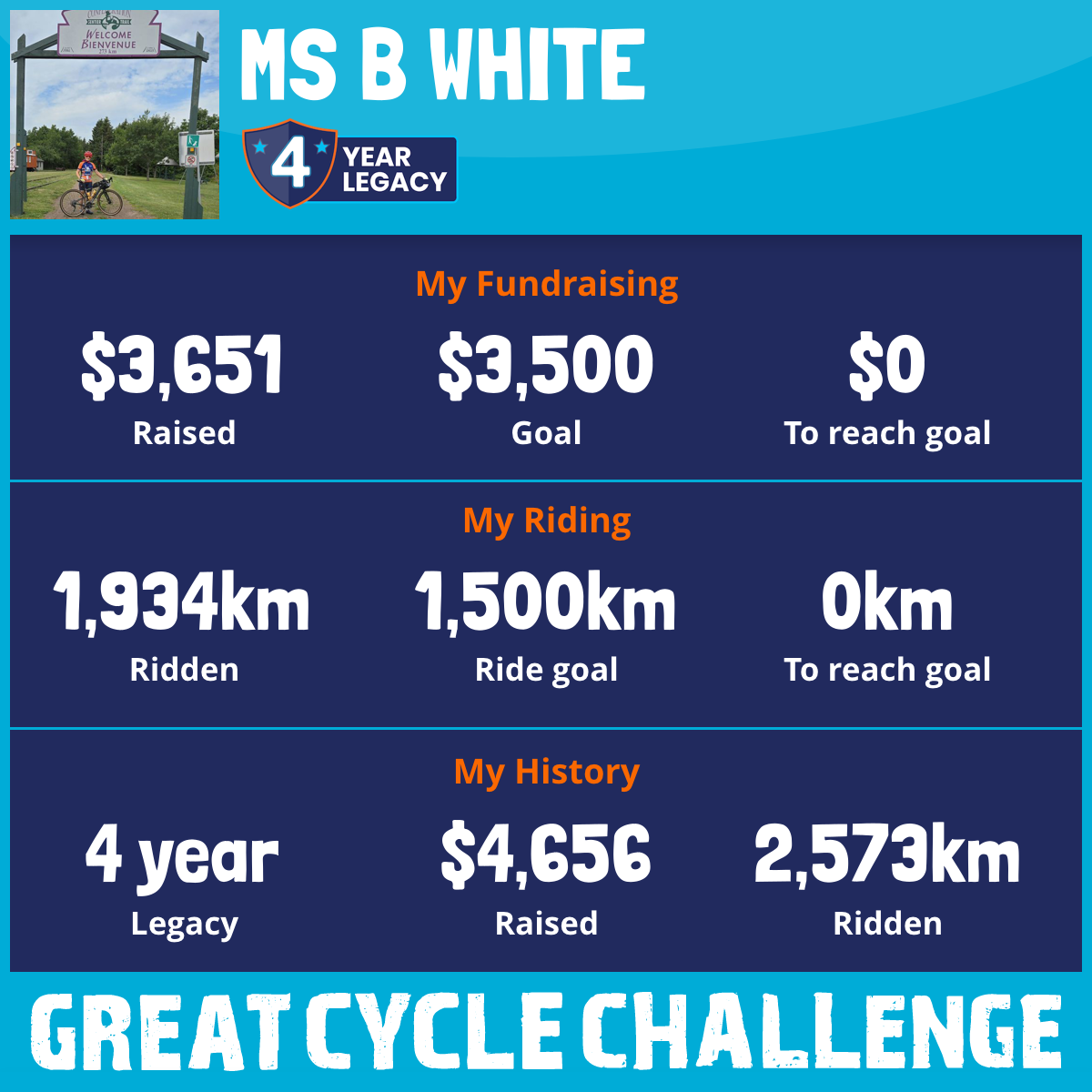1,934 km Ridden$3,651 Raised2025
