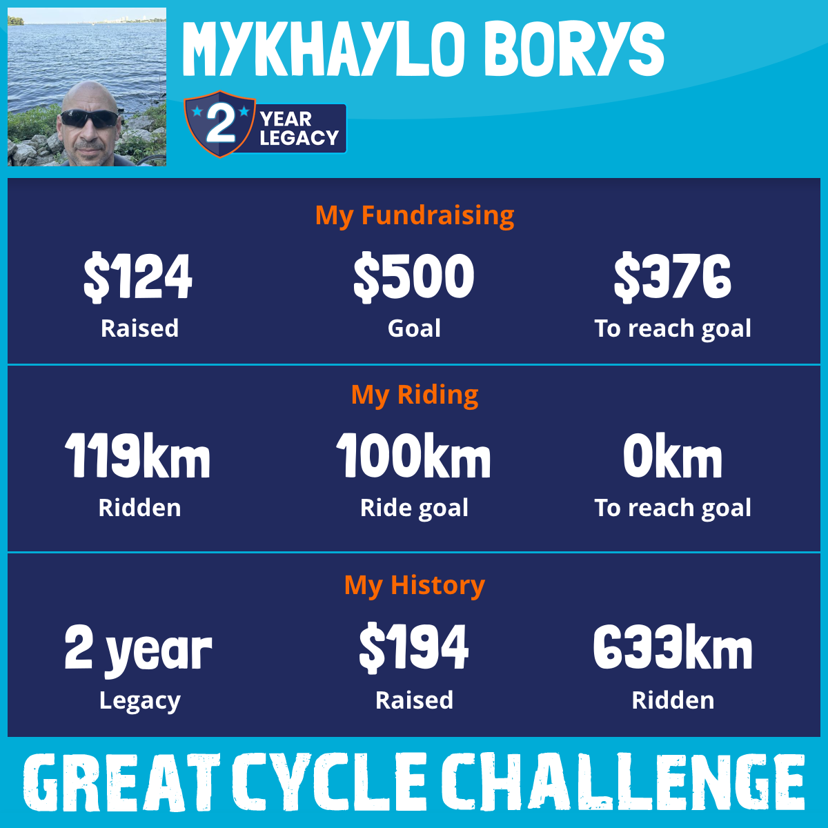 119 km Ridden$124 Raised2025