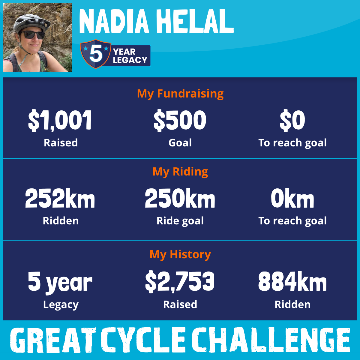 252 km Ridden$1,001 Raised2025