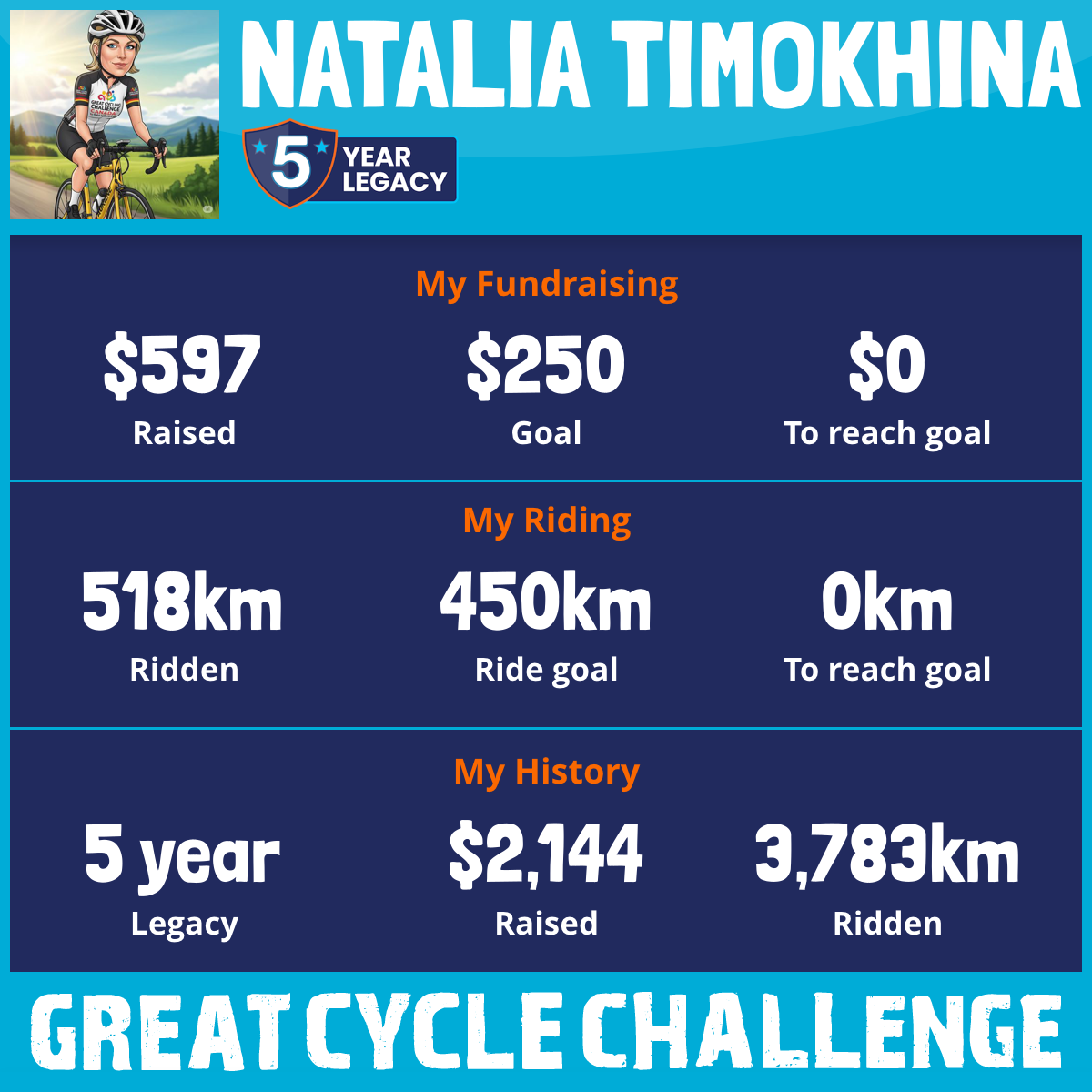 518 km Ridden$597 Raised2025