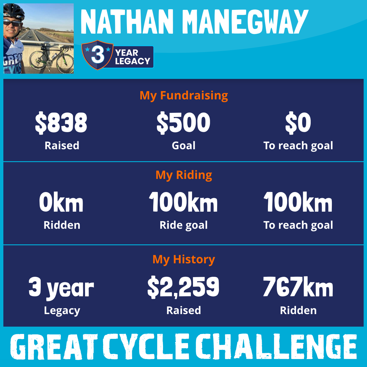 239 km Ridden$682 Raised2020