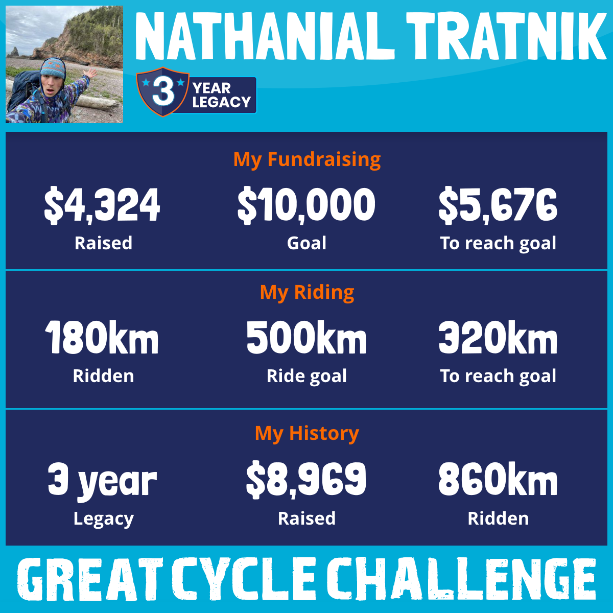 180 km Ridden$4,324 Raised2026