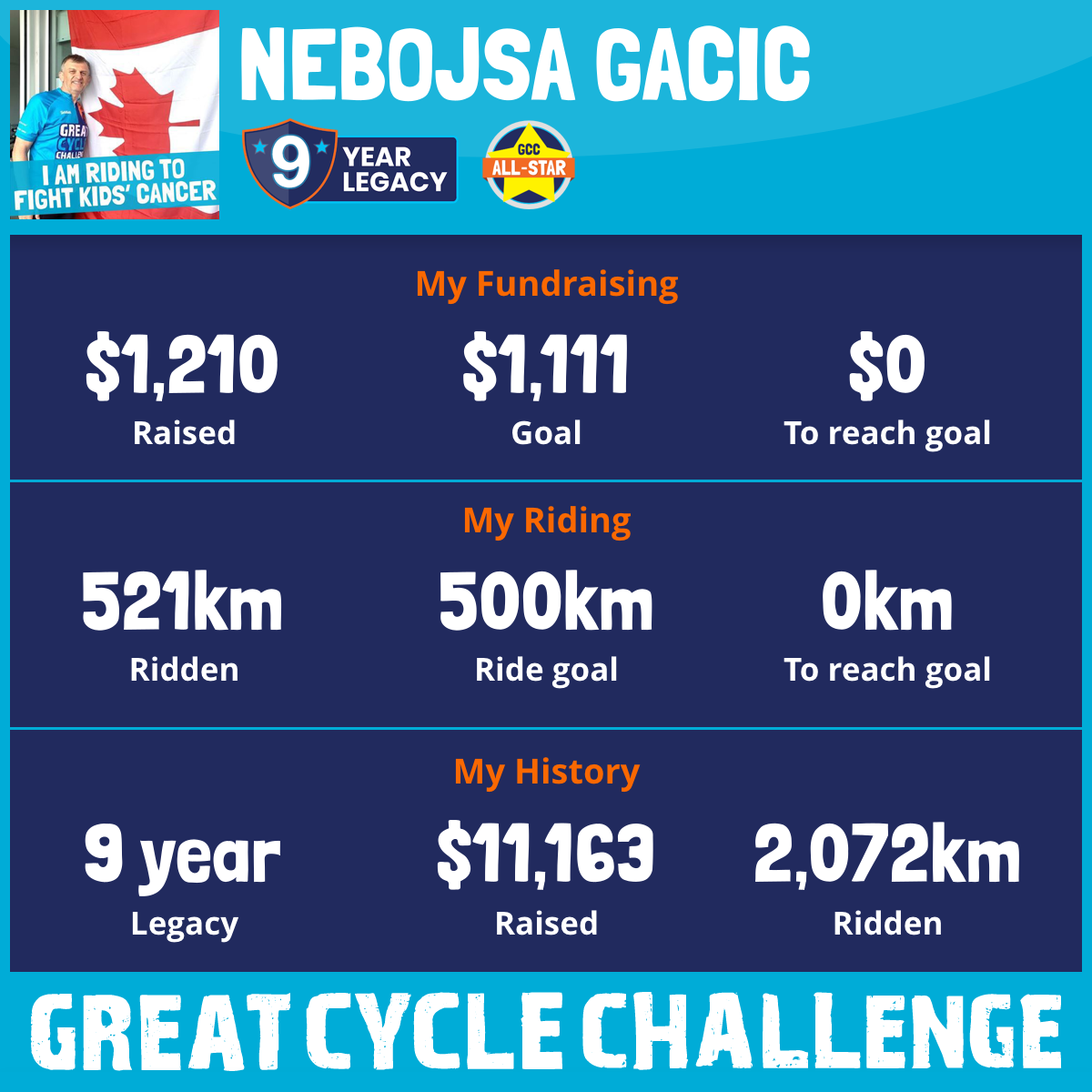 130 km Ridden$1,000 Raised2023