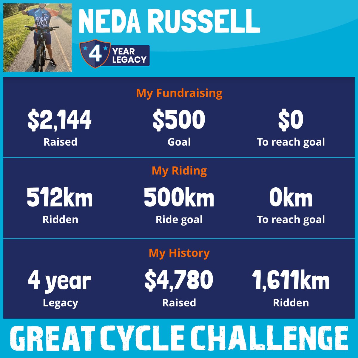 512 km Ridden$2,144 Raised2025