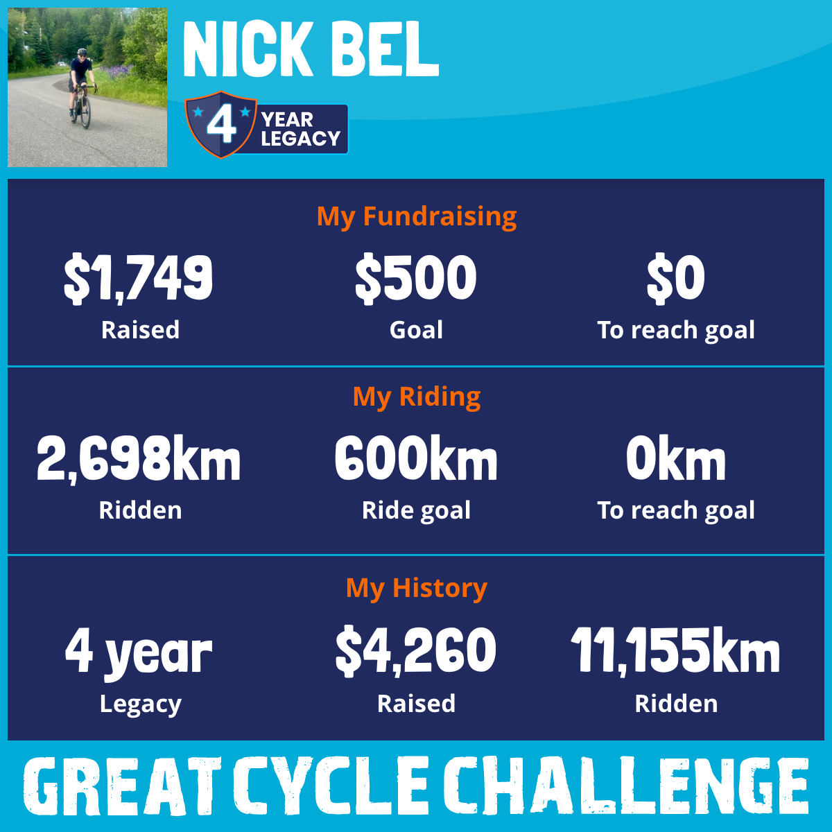 2,698 km Ridden$1,749 Raised2025